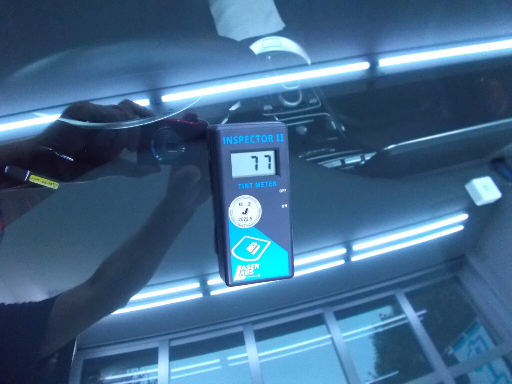 フロントガラス施工前、施工後の可視光率です。